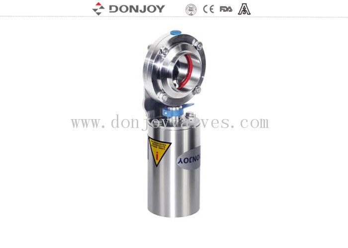 स्वच्छता स्तर के बुनियादी प्रकार का स्टेनलेस स्टील वायवीय क्लैम्प्ड बटरफ्लाई वाल्व, जिसमें एक्चुएटर लगा है
